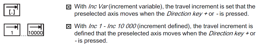 The axis traverses until either the Feed direction key -/+ is released