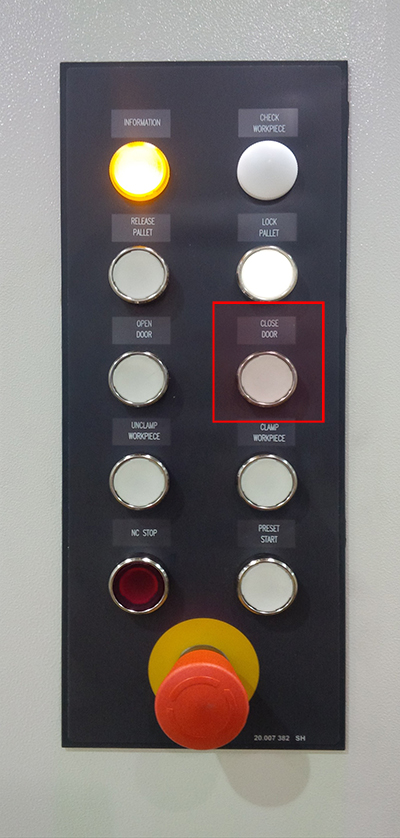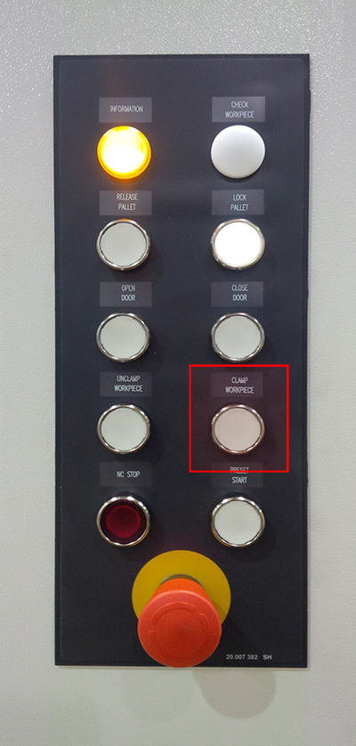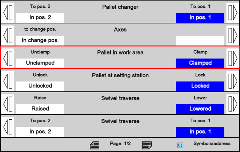 The "Pallet in work area" function clamps or unclamps the pallet on