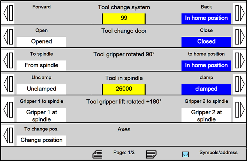 The "Axes" to "Change position" function moves the NC axes of the
