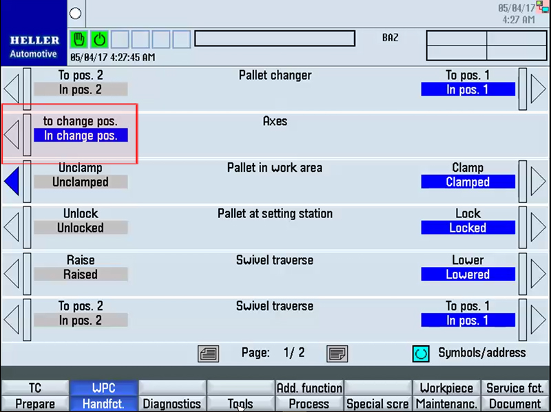Position 1 or 2 (this occurs at HMI Panel)
