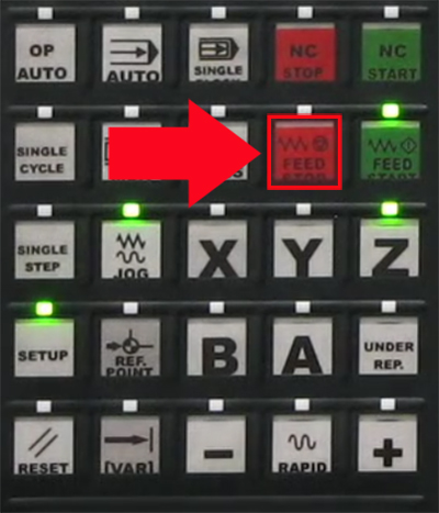 Hand stays on the feed override.