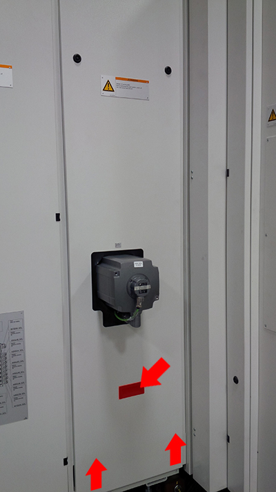Opening of Maintenance OpeningsMaintenance openings are not electrically monitored. Moving machine components are exposed when maintenance opening is opened. Persons in the danger zone may be seriously injured by moving machine components. Before the maintenance opening is opened, the main switch must be switched off and secured to prevent being re-activated. It must be impossible to switch on the machine while persons are in the hazard area. Step 1:Step 2:Step 3:Step 4:Step 5: |