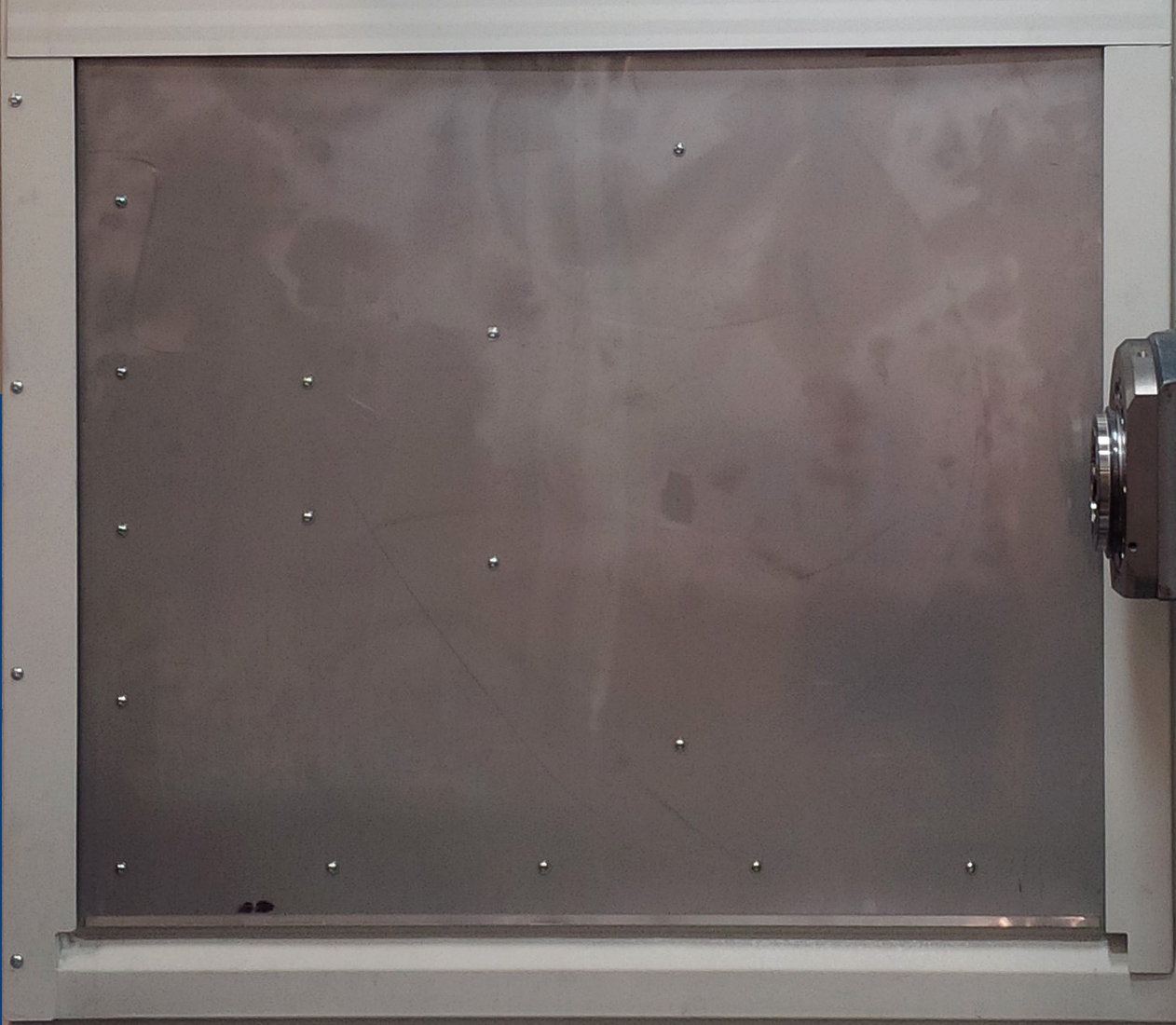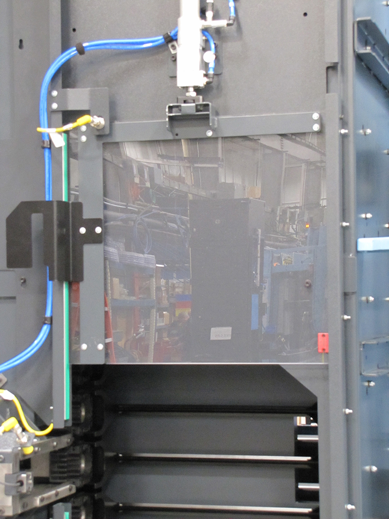 Step 5:Step 6:Step 7:Open maintenance door of the tool magazine. For more information on how to open the maintenance door see: "Opening the chain magazine maintenance door" Step 8:Step 9:Step 10:Step 11:Make clamping devices accesibleProcedure Open maintenance openeing B and D. Tensioning procedureTwo screws fasten the guide frame to the plate. This ensures that the distance between the guide frame and the tool cartridges remains the same even after the magazine chains are tensioned. Do not slacken these two screws ! The tensioning device at both the drive side and the non-drive end must be adjusted by the same amount in order to preserve the alignment of the transmission shaft and the sprocket shaft. By the same token: