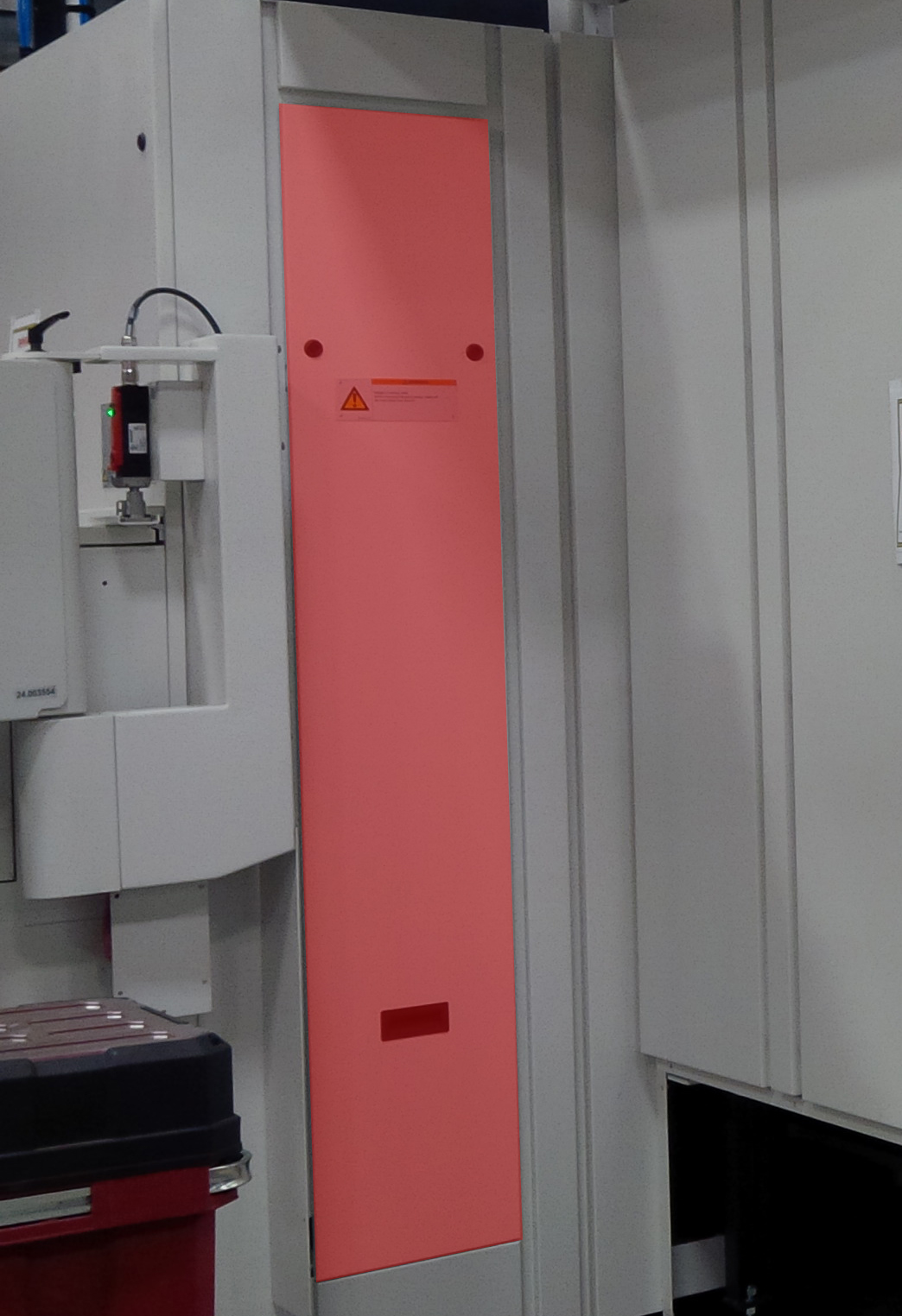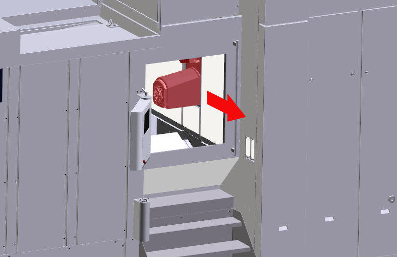 Step 16:Synchronize chain-type magazine with the tool setting station via individual function "chain synchronization". The control switches over to measuring system 2. The chain-type magazine moves up by the offset between the two measuring systems. Step 17:Unlock tool setting station safety door with intermediate door open: