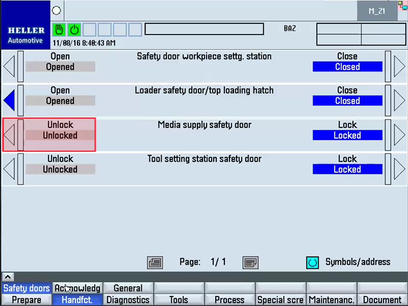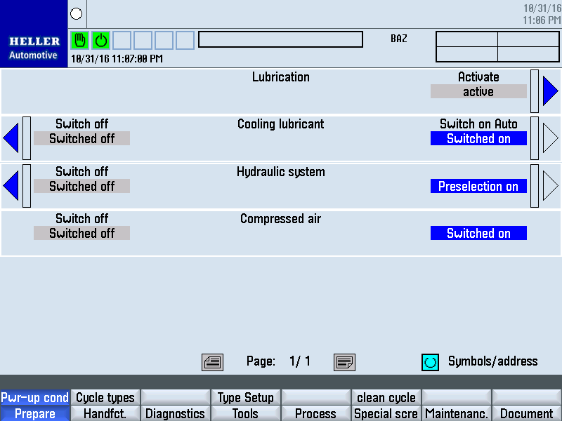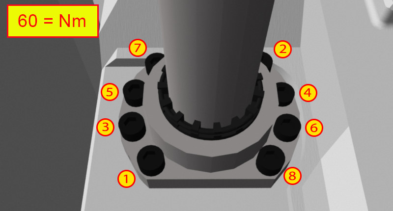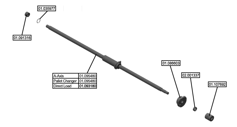 Step 1: ECPLStep 2: Unlock Maint. Opening / Remove PanelStep 3: Disconnect Motor Connections / Attach Lift AssistStep 4: Remove MotorStep 5: Remove Lube Line from BearingStep 6:Remove Fasteners from BearingStep 7:Open Maintenance DoorStep 8: Remove Lube Line from BallnutStep 9: Remove Fasteners from BallnutStep 10: Insert Jack ScrewsStep 11: Remove BallscrewStep 12: Move ColumnStep 13: Remove / Install New Needle BearingStep 14: Measure CouplingStep 15:Lubricate BearingStep 16: Install BearingStep 17: Install Locknut / CouplingStep 18: Install Inner RaceStep 19: Install InsertStep 20: Move ColumnStep 21: Clean Bearing Mounting SurfaceStep 22: Clean Ballnut Mounting SurfaceStep 23: Install BallscrewStep 24: Install Fasteners into BearingStep 25: Install Lube Line into BearingStep 26: Install Fasteners into BallnutStep 27: Install Lube Line into BallnutStep 28: Clean Mounting SurfaceStep 29: Install Motor / TorqueStep 30: Remove Lift Assist / Install Motor ConnectionsStep 31: Install Panel / Lock Maint. OpeningStep 32: Close Maintenance DoorStep 33: ECPLStep 34: Activate Lubrication and Run-inActivate the Lubrication Cycle several times via the HMI - Prepare - Pwr-up Cond. HMI screen. After the lubrication cycles have been completed, it is now necessary to run-in the ballscrew. This can be accomplished by moving the axis back and forth along the entire length of travel at half rapid speed for 30 minutes. Then allow the ballscrew to cool for 45 minutes. Once completed, the ballscrew can now be fully loaded. |